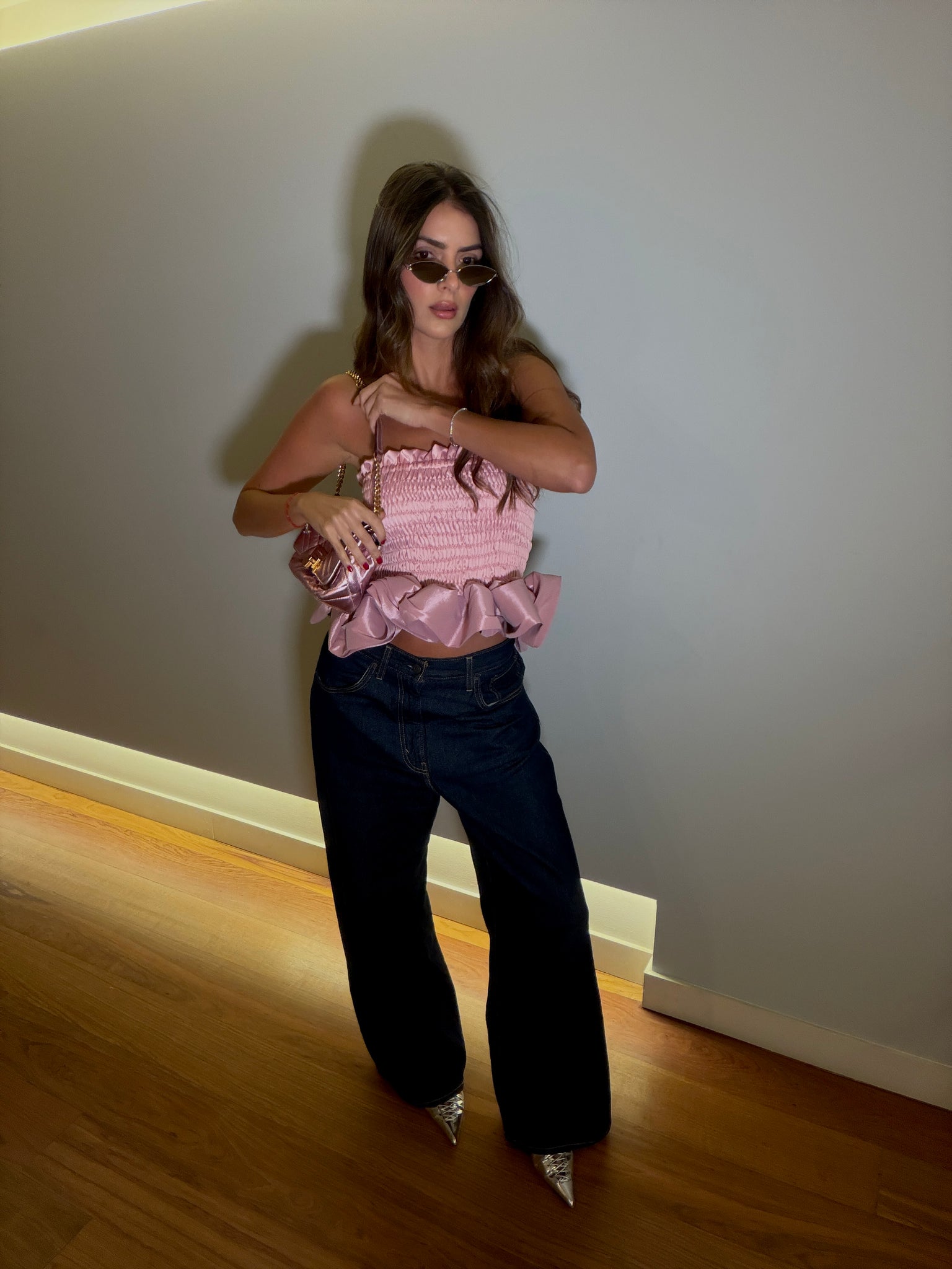Un top que nos define en satín con nuestro recurso característico que se acomoda perfecto al contorno, es el top perfecto para elevar tu look! con una arandela bombacha en tafeta para darle todo ese 'Romantic Touch'.